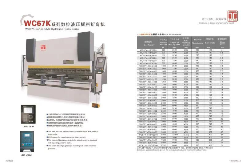 產(chǎn)品介紹:WE67K電液伺服數(shù)控折彎?rùn)C(jī)性能特點(diǎn): ●兩側(cè)主油缸同步采用德國(guó)進(jìn)口電液伺服閥和德國(guó) HEIDENHAIN 公司光柵尺構(gòu)成閉環(huán)控制,反饋***高,滑塊運(yùn)行準(zhǔn)確,從而使折彎精度、滑塊重復(fù)定位精度高。 ●采用液壓凸形自動(dòng)補(bǔ)償系統(tǒng),解決滑塊在折彎過程中的變形對(duì)工件質(zhì)量的影響。補(bǔ)償數(shù)量由數(shù)控系統(tǒng)自動(dòng)調(diào)整,方便***。 ●采用功能齊全的后擋料機(jī)構(gòu),可選擇控制多個(gè)后擋料軸。后擋料中的功能部件,如導(dǎo)軌、絲杠
